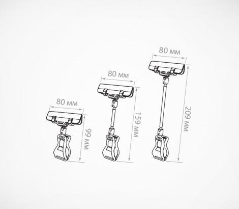 Крепится на торец полки, корзину толщиной до 25 мм. При креплении на трубу - максимальный Ø трубы - 32 мм. Толщина ценника или таблички - до 6 мм. Ширина держателя ценника - 80 мм. Три вариант высоты ножки - 0, 50, 100 мм.