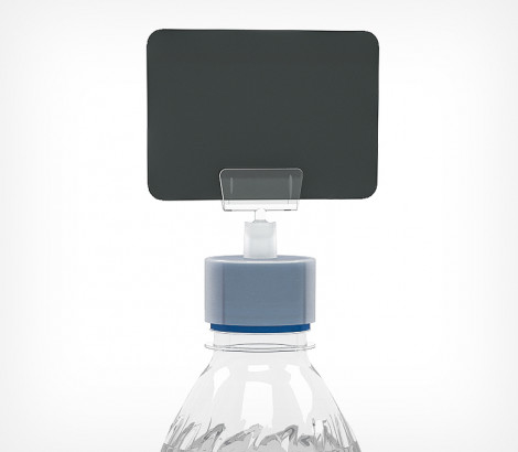 Держатель-крышка на бутылку BOTTLE CAP — подходит к стандартным бутылочным крышкам диаметром до 28 мм; позволяет размещать ценники непосредственно на бутылках с продуктами, что облегчает поиск цены к конкретному товару; на основе BOTTLE CAP легко собирать различные варианты ценникодержателей со стандартными комплектующими шарнирной системы; все элементы выполнены из ударопрочного пластика
