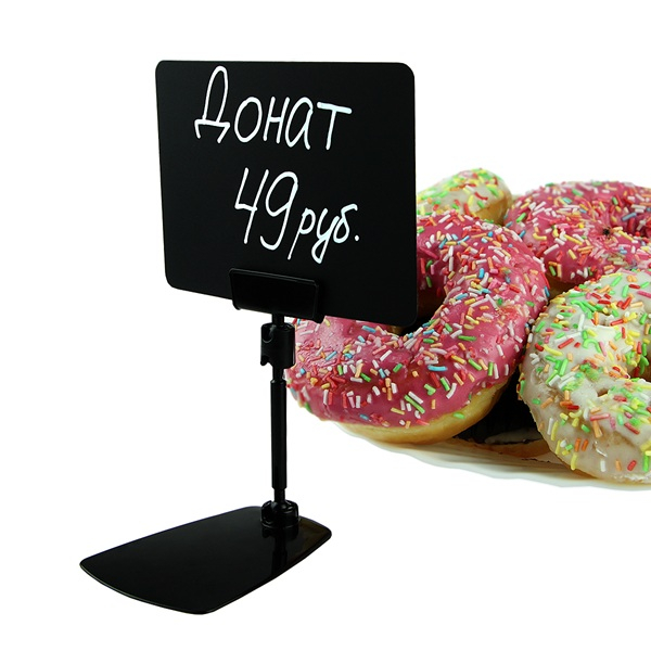 Вставка в рамки из плотного чёрного пластика для нанесения надписей белым маркером на меловой основе. Рекомендуется использовать со специальными меловыми маркерами , представленными в нашем каталоге. Толщина табличек - 0,5 мм. Углы таблички закруглены.