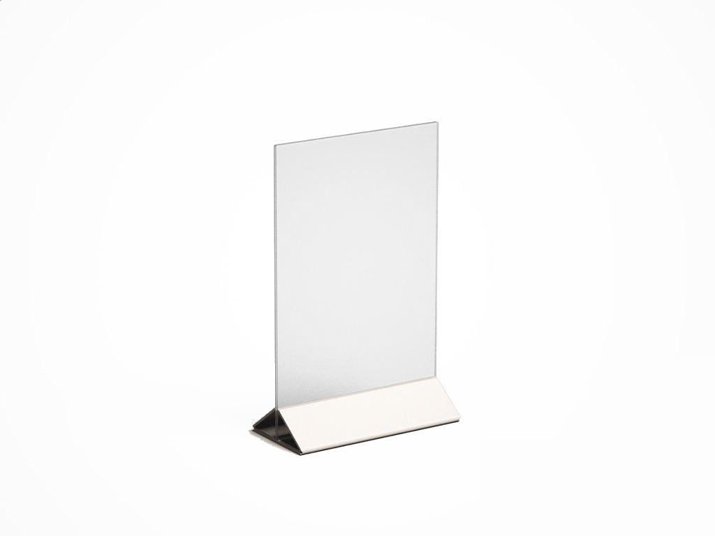 МЕНЮХОЛДЕР ФОРМАТА А-5, С НИЖНЕЙ ЧАСТЬЮ РАЗЛИЧНЫХ ЦВЕТОВ, КЛАСИЧЕСКОГО ВИДА.  СОСТОИТ ИЗ ДВУХ ЧАСТЕЙ,  ПРОЗРАЧНОГО Т-ОБРАЗНОГО ПЛАНШЕТА И НИЖНЕГО ДЕРЖАТЕЛЯ, ТРЕУГОЛЬНОЙ ФОРМЫ. ПОДХОДЯЩИЕ ИЗДЕЛИЕ, ПРИ НЕОБХОДИМОСТИ ПО ОСОБЕННОМУ ВЫДЕЛИТЬ ИНФОРМАЦИЮ.