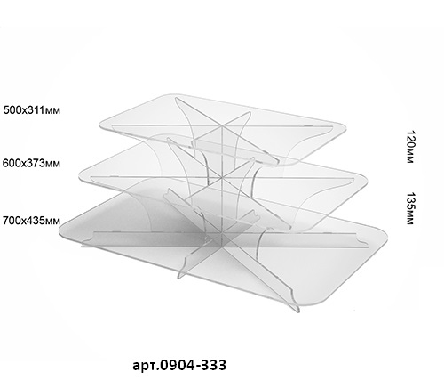 Прямоугольная витрина для различных товаров. Материал изготовления, оргстекло пять миллиметров, лазерная обработка материала. Эффективно выделяет товары, расположенные на витрине. Возможно изготовление в белом цвете + 20% к стоимости.