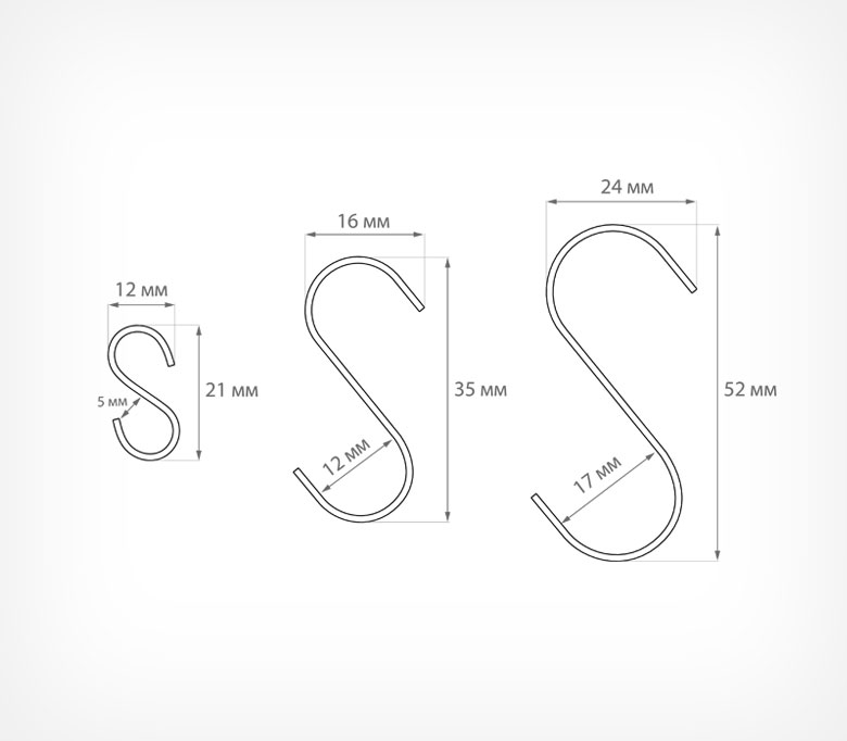 Металлический S-образный крючок для соединения разных частей вывески. Толщина проволоки - 1,5 мм.