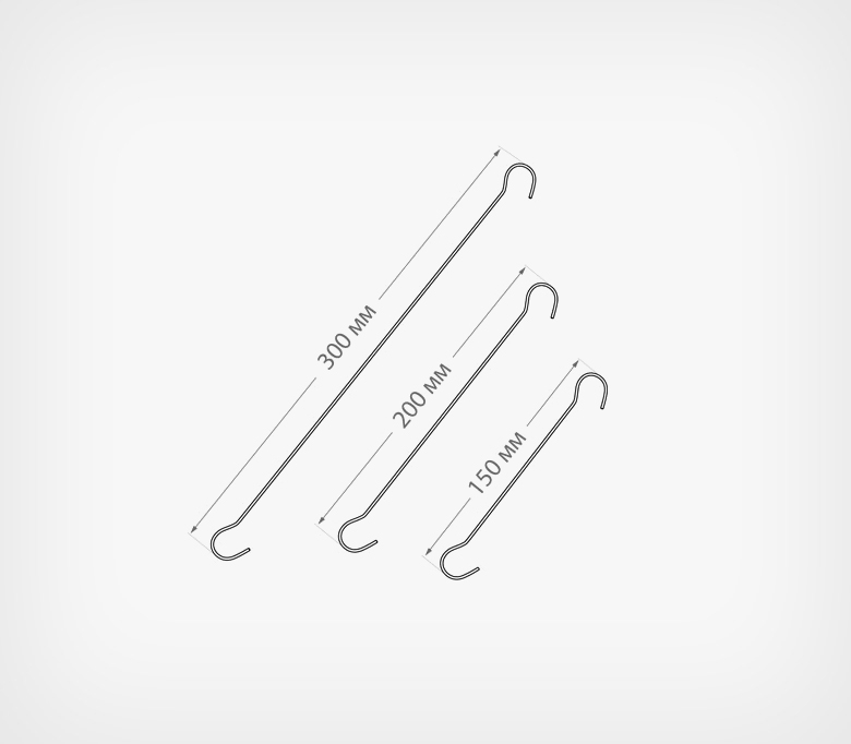 Удлинённый крючок DS-HOOK — металлический аксессуар для подвешивания постеров и вывесок. Изготовлен из прочной стальной проволоки толщиной 2 мм.