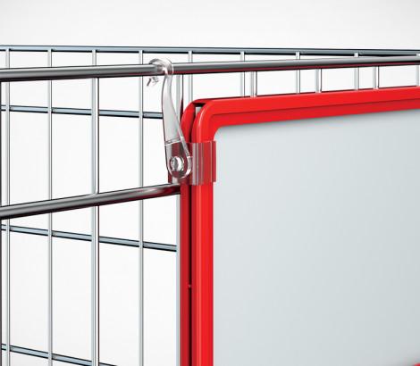 Крючок с подвижным основанием для подвешивания пластиковых рамок на подвесных профилях и металлических покупательских корзинах . Закрепляются с боковой стороны рамки. Для подвешивания одной рамки необходимо два крючка разной ориентации.