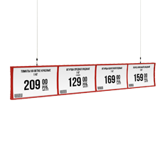 Подвесные системы позволяют использовать торговую площадь магазина максимально эффективно. Именно подвешивание профилей с информационными или рекламными плакатами может обеспечить удобное и быстрое информирование потребителей. Такие системы привлекают внимание за счёт своих размеров и ярких цветов.