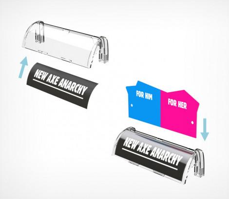 Используется передний профиль с ценникодержателем. Высота рекламной вставки - 30 мм. Имеет Т-профиль для крепления разделителей и толкателей. Крепится на полку на двухсторонний скотч.