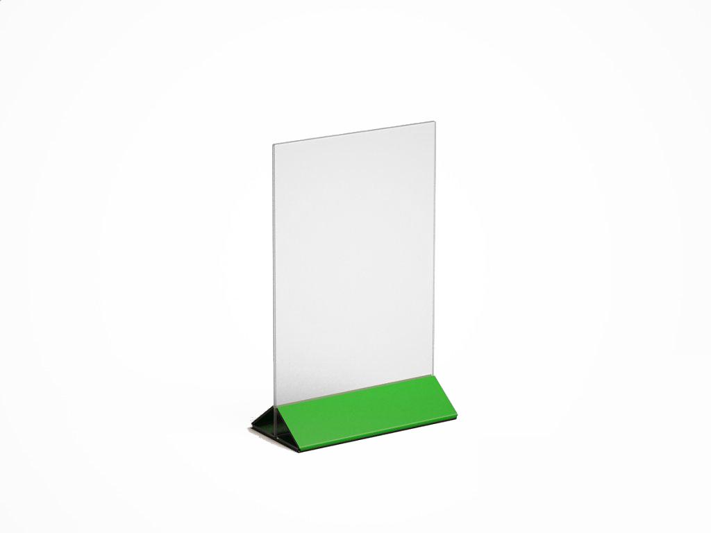 МЕНЮХОЛДЕР ФОРМАТА А-5, С НИЖНЕЙ ЧАСТЬЮ РАЗЛИЧНЫХ ЦВЕТОВ, КЛАСИЧЕСКОГО ВИДА.  СОСТОИТ ИЗ ДВУХ ЧАСТЕЙ,  ПРОЗРАЧНОГО Т-ОБРАЗНОГО ПЛАНШЕТА И НИЖНЕГО ДЕРЖАТЕЛЯ, ТРЕУГОЛЬНОЙ ФОРМЫ. ПОДХОДЯЩИЕ ИЗДЕЛИЕ, ПРИ НЕОБХОДИМОСТИ ПО ОСОБЕННОМУ ВЫДЕЛИТЬ ИНФОРМАЦИЮ.