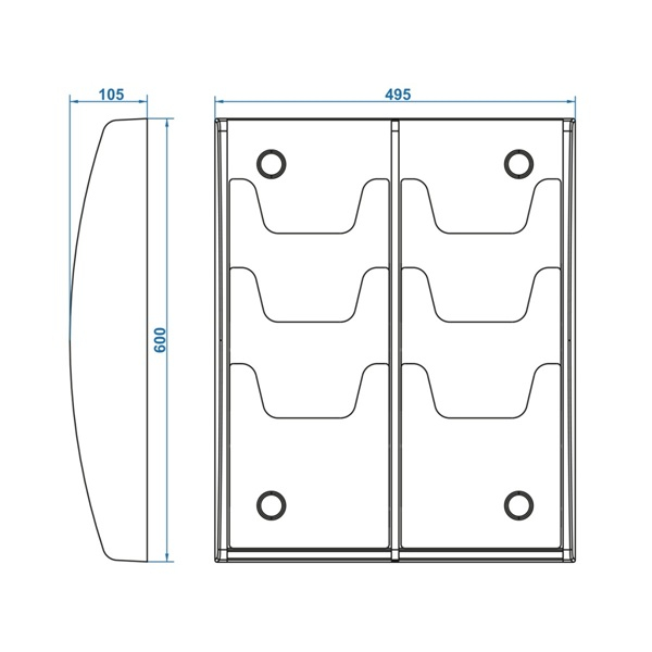 Пластиковая основа кармана изготовлена методом вакуумной формовки, прозрачные вставки - ПЭТ 3мм. Глубина карманов: верхний 60 мм, средний и нижний 20 мм