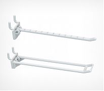 Двойные и одинарные крючки для крепления на картон. Эксклюзивное решение, для получения дополнительной вертикальной площади, для реализации товаров. Легко устанавливаются на изделия из картона при помощи интегрированных крючков с гарпунным наконечником. Усиленный материал крючков и ребра жесткости позволяют использовать крючок, даже для тяжелых товаров.