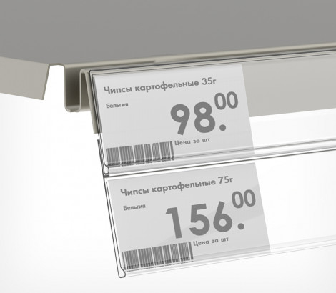 Используется как компонент двойного ценникодержателя, применяется при необходимости увеличения информации. Подклеивается снизу основного (несущего) ценникодержателя, закрепленного непосредственно на полке.
